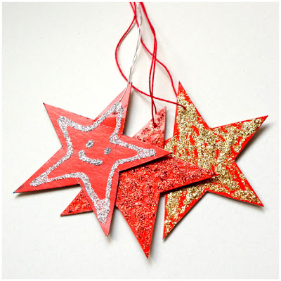 Ihr könnt natürlich auch Karton dafür nehmen. Die Sterne könnt ihr für den Christbaum, als Geschenk-Anhänger oder mit ganz vielen davon eine Girlande daraus machen.